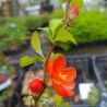 Arbuste épineux à longue floraison rouge et à fruits comestibles pour nous et les oiseaux.