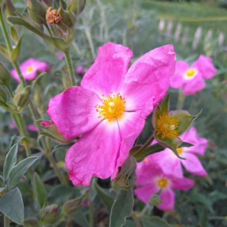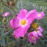 Un Ciste lumineux au port dressé. Grandes fleurs rose tendre.